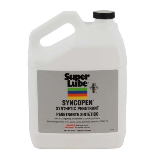 Super Lube ® Syncopen ® Tổng hợp Penetrant là chất bôi trơn Cấp thực phẩm đã đăng ký NSF, được xếp hạng H1 cho tiếp xúc với thực phẩm ngẫu nhiên và đáp ứng các hướng dẫn trước đây của USDA (H1).