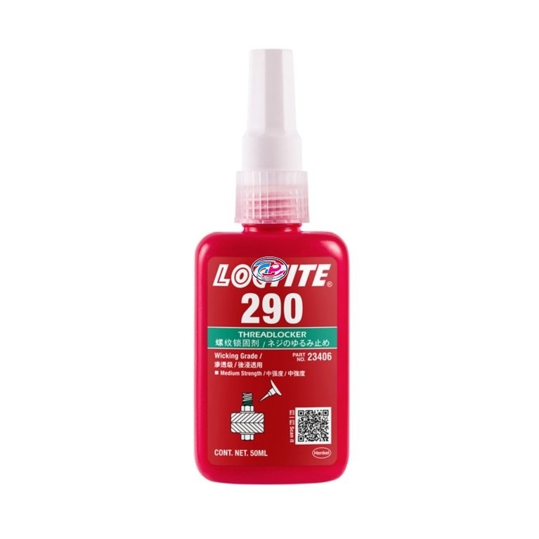 Loctite 290 chống tự tháo. Màu xanh lục. Vì là sản phẩm có độ nhớt thấp, thẩm thấu được nên Loctite 290 dùng cho chi tiết đã được lắp ghép với nhau như: Ốc vít thiết bị, đầu nối thiết bị, đầu nối cáp điện và bộ ốc vít. Ngoài ra còn được dùng để làm kín vết rỗ mối hàn và vật liệu kim loại.